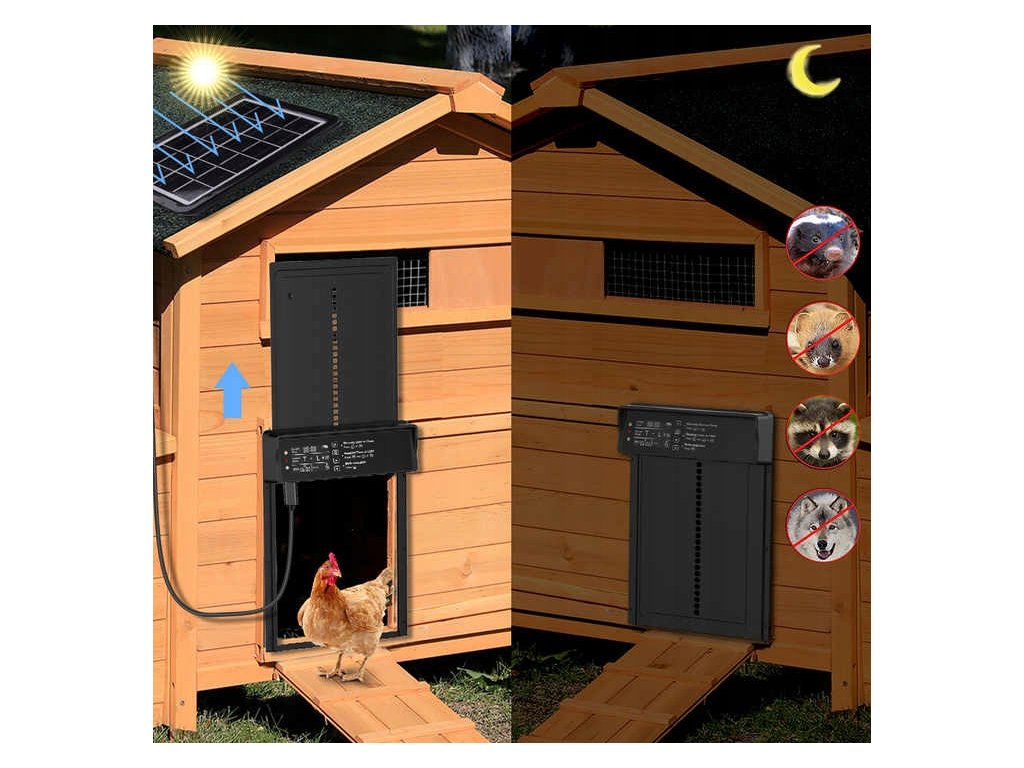 Ez a kiváló, napelemes, automata tyúkólajtó ideális választás mindazok számára, akik egyszerűsíteni szeretnék a mindennapjaikat és növelni szeretnék gazdaságuk biztonságát . Biztonságot, hatékonyságot és kényelmet kínál, amelybe hamar beleszeret.