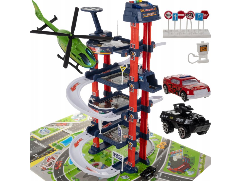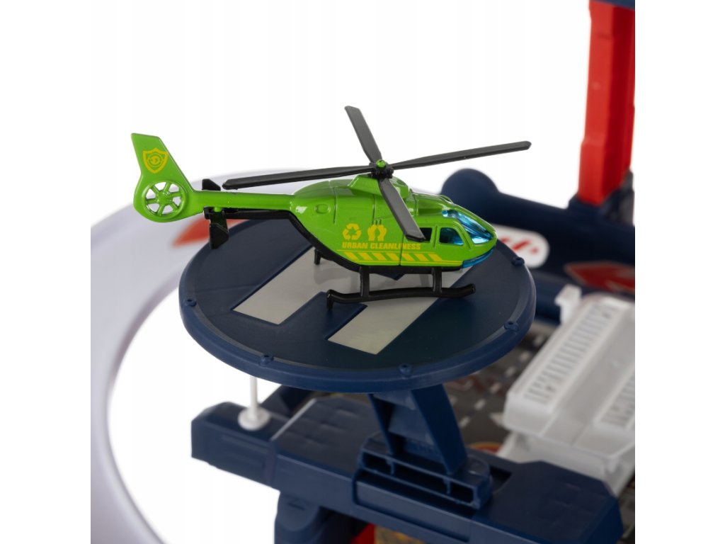 A négyszintes parkolóban egy helikopter-leszállóhely is található, ahonnan helikopterrel lehet felszállni mentési műveletekre vagy város felfedezésére. Ez az elem új dimenziót adhat a játéknak, és támogathatja a gyermek fantáziáját.