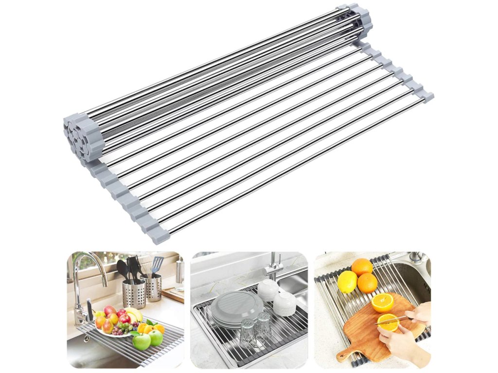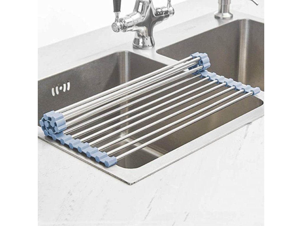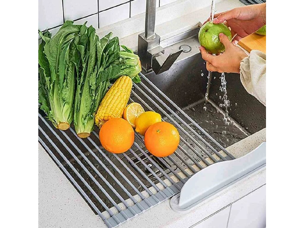 A rozsdamentes acél csepegtető összecsukható, így ha most nincs rá szüksége, könnyedén feltekerheti és elteheti. Így több helyet kap a konyhában. Ugyanakkor helyet takarít meg a használat során. Ha a mosogatóra helyezi, értelmesebben használhatja a környezetét.