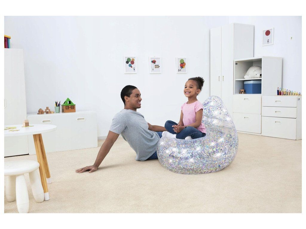 Akár 70 kg-os teherbírásával ez a praktikus felfújható, csillogó szék nagyszerű gyermekek és fiatal tinédzserek számára.