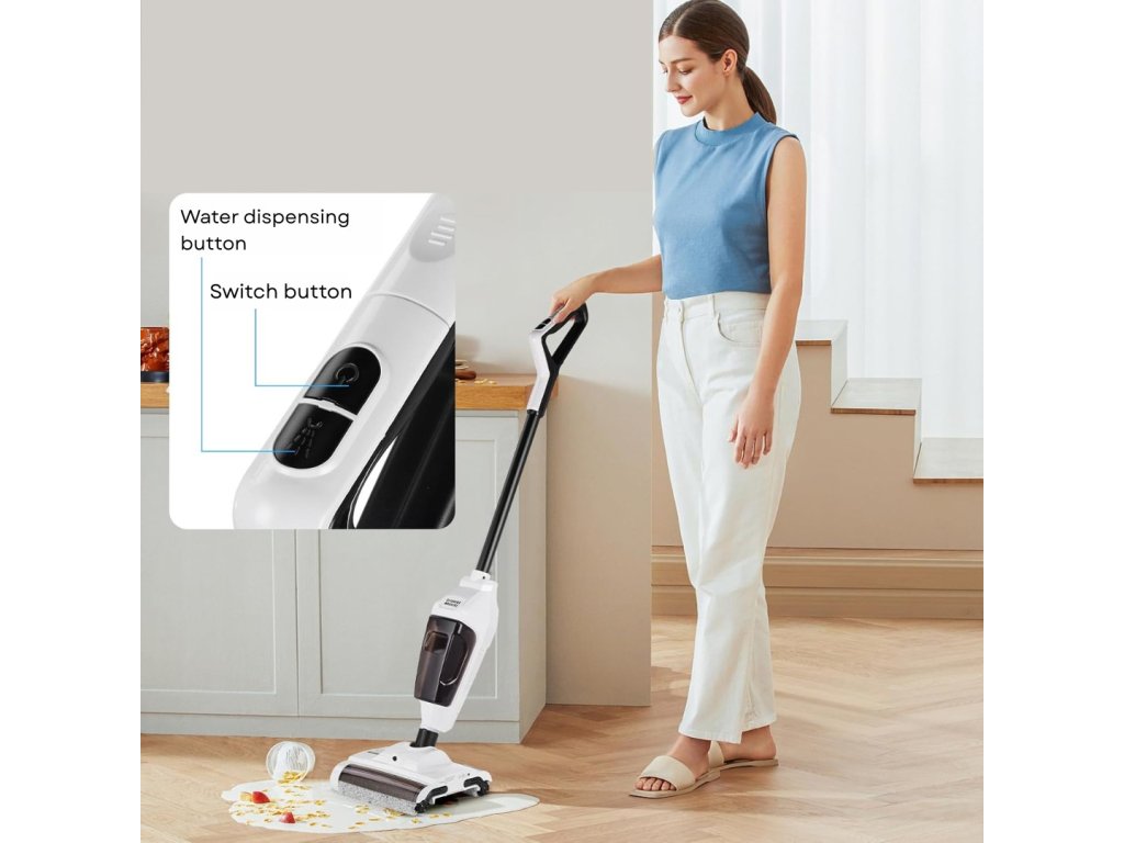 Felejtse el a rövid kábelt, amivel nem tud a sarkokon sem mozogni. Ez a felmosóval ellátott rúdporszívó vezeték nélküli. Csak töltse fel, és máris porszívózhat és felmoshat padlót a házban vagy a lakásban.