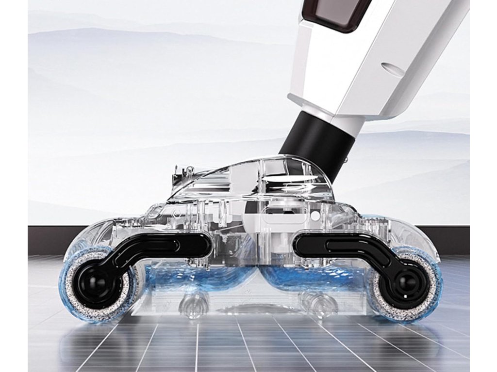 A akkus, felmosóval ellátott rúdporszívó a porszívózást, a mosást és a seprést is ötvözi. Két görgővel van felszerelve, amelyek összegyűjtik az összes szennyeződést, amellyel érintkezésbe kerülnek. Ezenkívül az egyik elöl, a másik hátul található. Ezáltal a padló tisztítása hatékonyabb és gyorsabb.
