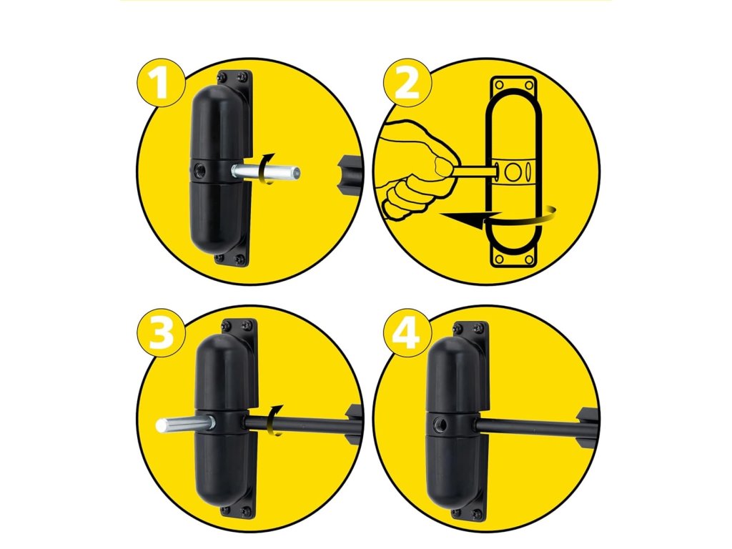 A csomag mindent tartalmaz, ami a telepítéshez szükséges. A megbízható ajtó- és kapucsukó komplett tartozékkészlettel érkezik, beleértve a csavarokat, konzolokat, állítórudat és kart.