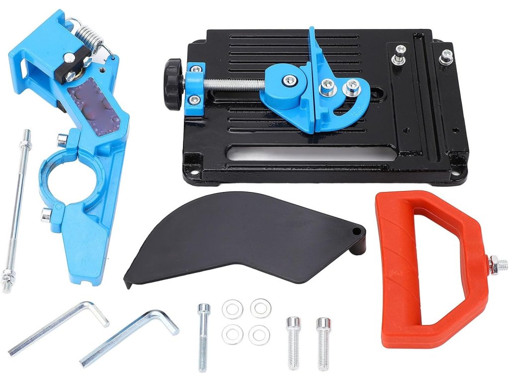 A csomag mindent tartalmaz, amire az azonnali használathoz szüksége lehet. Az univerzális sarokcsiszoló állvány minden szükséges alkatrészt tartalmaz, beleértve az alapot és a fedelet is.