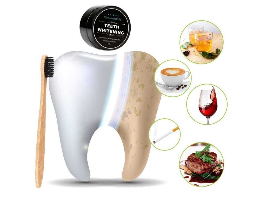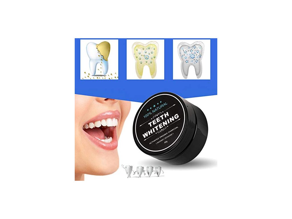 Az aktív szénpor hatékonyan távolítja el a cigaretta, tea, bor és kávé okozta foltokat, a sötét foltokat és a lepedéket, és visszaadja a magabiztos mosolyt, gyönyörűen fehér fogakkal. A szén nemcsak a fogak felszínét fehéríti, hanem erősíti a fogzománcot is. Az egészséges és szép mosolyért.