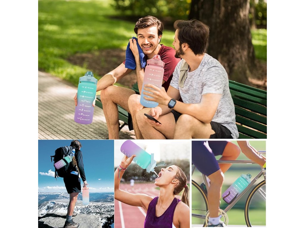 A kivételes 2 literes űrtartalom biztosítja, hogy bőséges víz álljon rendelkezésre anélkül, hogy gyakran kellene utántölteni. Ez a kapacitás különösen ideális forró napokon, sportolás vagy egész napos munka közben. A motivációs palack emlékeztetni fogja Önt arra, hogy a vízivás nem csupán szükséglet, hanem kellemes szokás, amely támogatja az egészséget és a vitalitást.