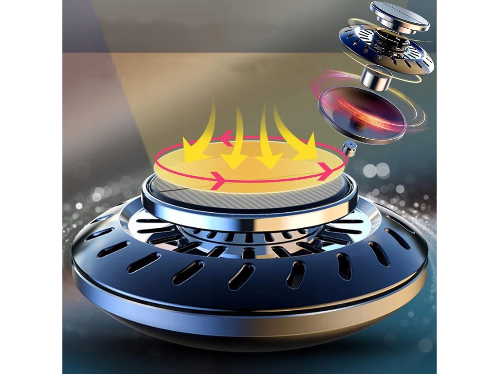 Ez a környezetbarát légfrissítő tisztán napenergiával működik, így nincs szüksége elemekre vagy külső áramforrásra. A napsugarak segítségével az illat egyenletesen oszlik el az autó utasterében. Megbízhatóan és hatékonyan működik még felhős napokon is, biztosítva az állandó frissességet.