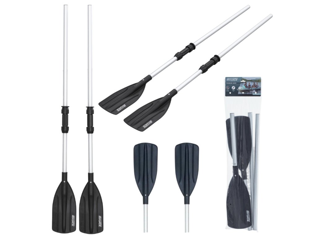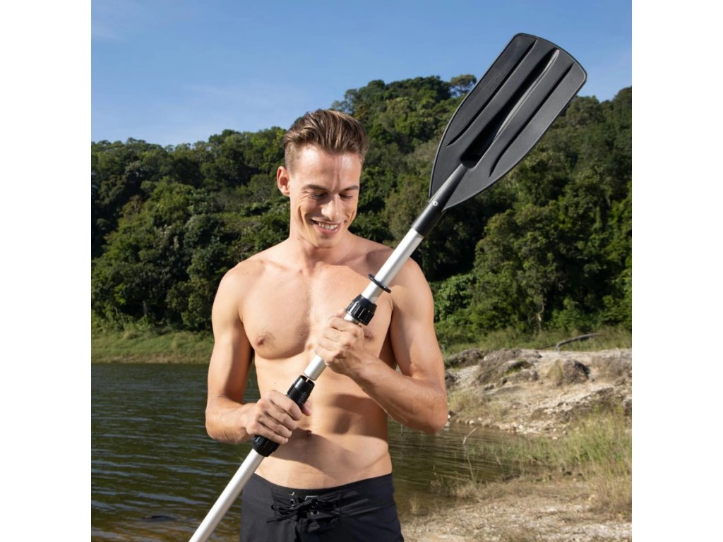 Az egyedülálló 2 az 1-ben alumínium kajaklapátok maximális rugalmasságot kínálnak az aktuális igényeknek megfelelően. Használhatod őket két különálló, 145 cm hosszú evezőként , vagy könnyedén kombinálhatod őket egy 218 cm hosszú kajaklapáttá .