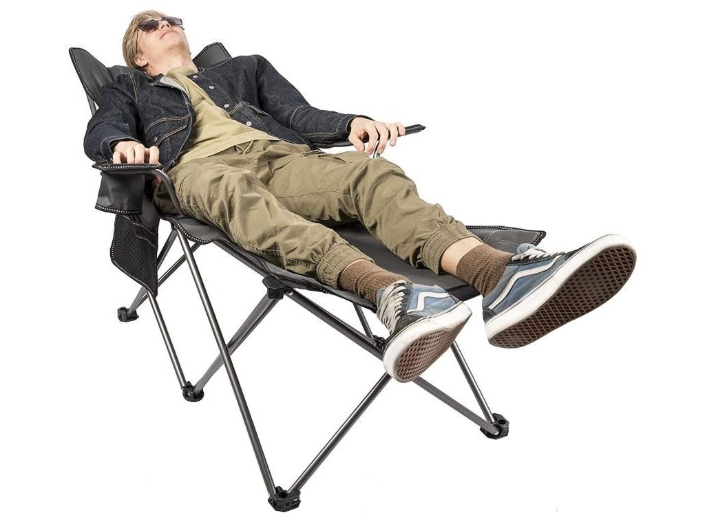 Az összecsukható kempingszék nyugodt pihenést biztosít. A fejtámlának is örülni fog, amely teljes mértékben helyettesítheti a párnát.