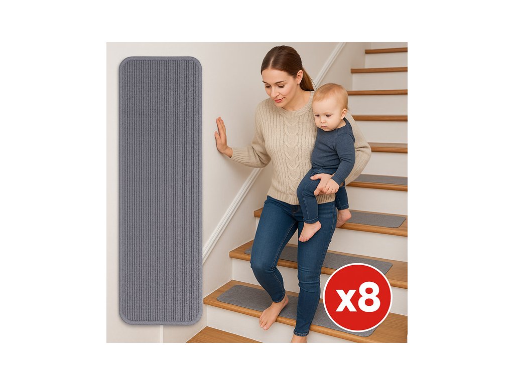 A csúszásgátló lépcsőszőnyegek speciális alsó réteggel vannak ellátva, amely kiválóan tapad a felületekhez. Ezáltal a lépcsőfokok tökéletesen stabilak, és magabiztosan járhat rajtuk.
