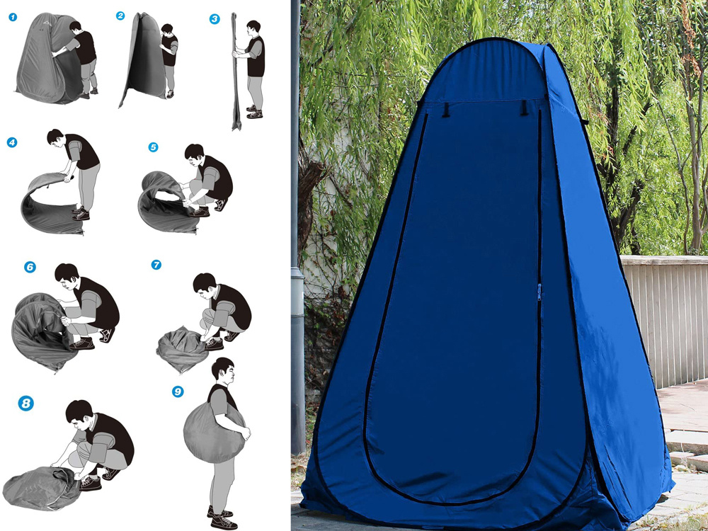Mindennek véget vethet a strandon felállított öltözősátornak köszönhetően, amelyet privát zuhanyzónak vagy WC-nek használhat.