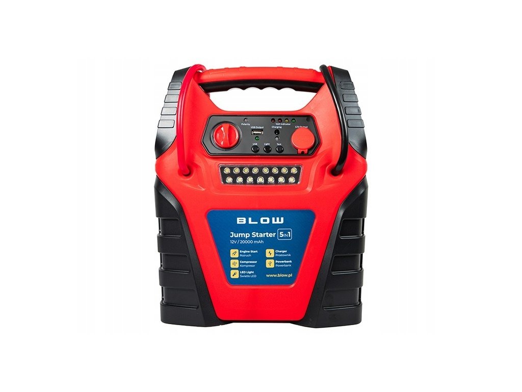 Ez az egyedülálló indító powerbank egy nyomásmérővel ellátott légkompresszorral és egy automatikus szelepcsatlakozóval ellátott tömlővel is rendelkezik. A kompresszor nyomása 20 bar / 300 PSI. Ezenkívül ez a praktikus készülék 3 fúvókával rendelkezik a különböző tartozékok, például labdák, matracok stb. felfújásához.