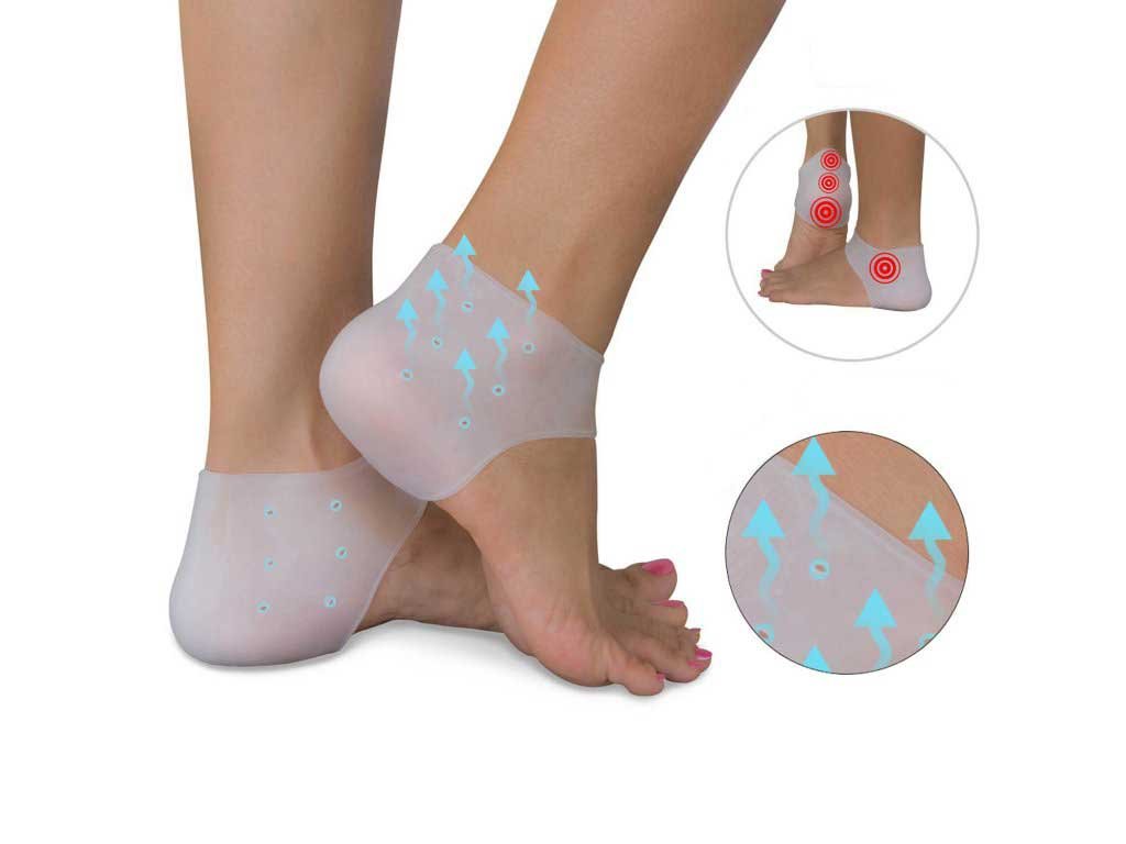 Ezt az egyedi sarokvédőt is használhatja a száraz és repedezett sarkak ellen. Csak vigyen fel krémet a lábára, és tegye fel a zselés sarokvédőt, zoknit is viselhet a védőn. A hidratáló zselés talpbetét megvédi a sarkat a bőrkeményedéstől, hólyagoktól és repedésektől. Felgyorsítja a repedezett és száraz bőr gyógyulását, ugyanakkor regenerálja a bőrt.