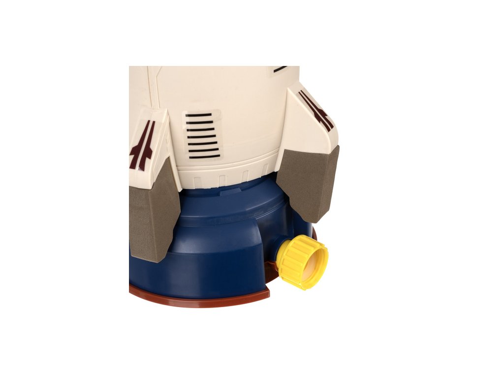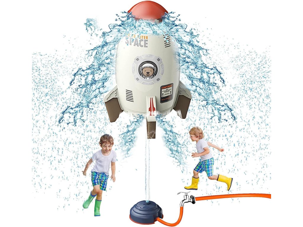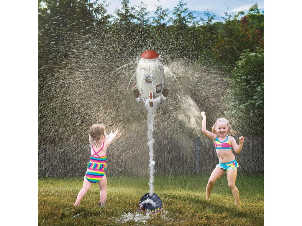 A gyerekeknek szánt vízirakéta szilárd és kiegyensúlyozott talppal van felszerelve, amely működés közben mozdulatlan marad. Épp ellenkezőleg, a rakéta magasra emelkedik a vízsugár alatt, forog és vizet permetez körbe.