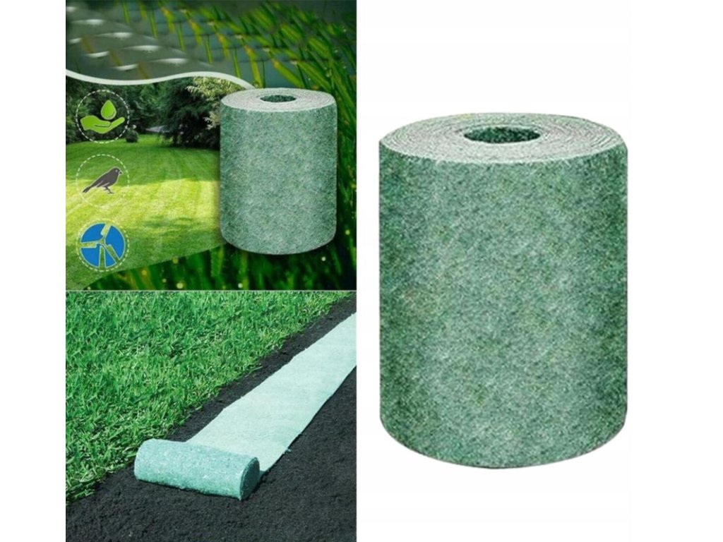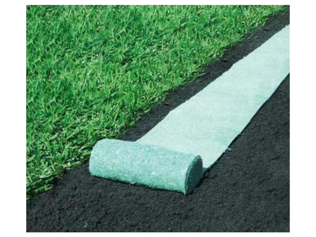 A szőnyeg segít megtartani a nedvességet a talajban, megvédi a magokat a kimosódástól, és elősegíti az egyenletes fűcsírázást.
