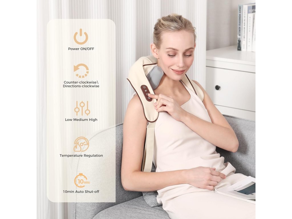 A számítógép előtt ülés vagy a rossz testtartás fájdalmat okozhat a nyakban és a vállakban. Ez az egyedülálló nyak- és testmasszírozó hatékonyan segít ellazítani a merev izmokat, enyhíti a nyaki gerincre nehezedő nyomást, és enyhíti a stressz vagy a munkahelyi helytelen testtartás okozta fájdalmat.