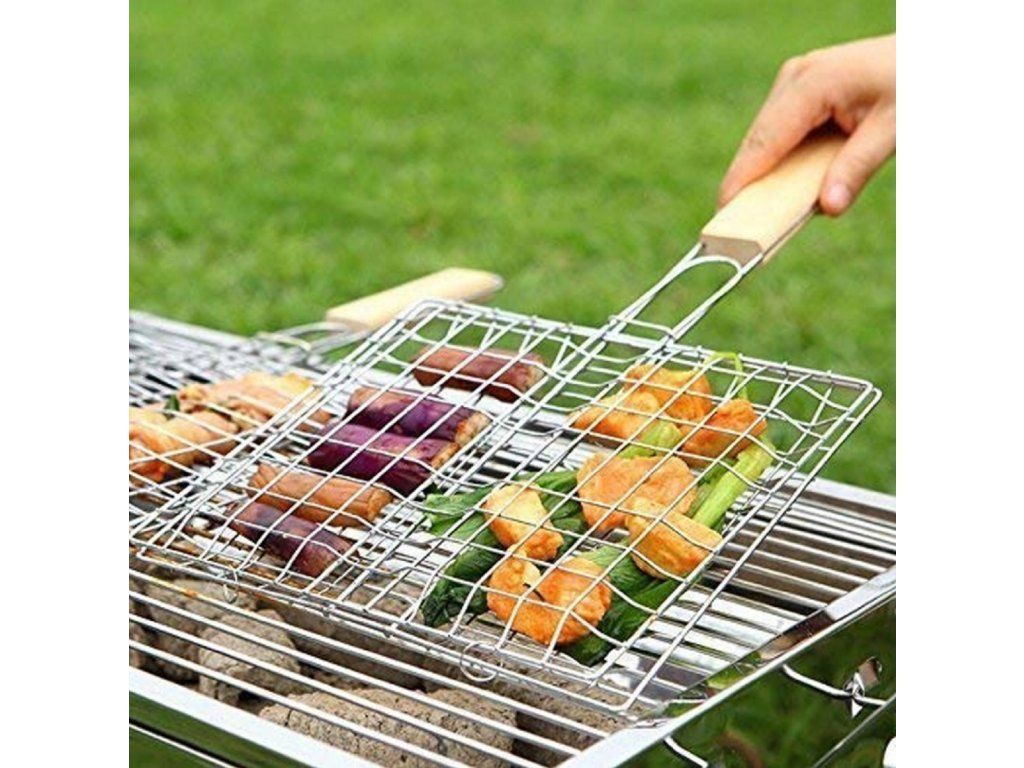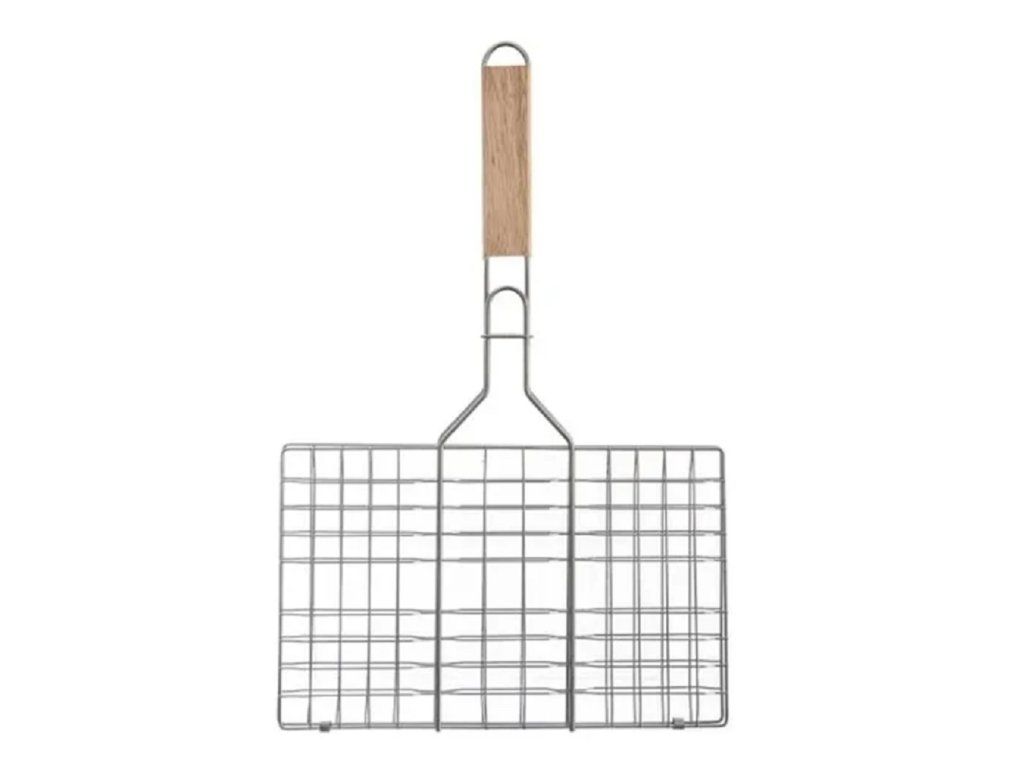 Ennek a grillrácsnak egy rendkívül hasznos tulajdonsága a fa nyél . Ez kényelmes fogást biztosít grillezés közben. Ugyanakkor a biztonságodról is gondoskodik. Megvédi a kezeidet a hőtől , és lehetővé teszi a biztonságos forgást a tűz felett.